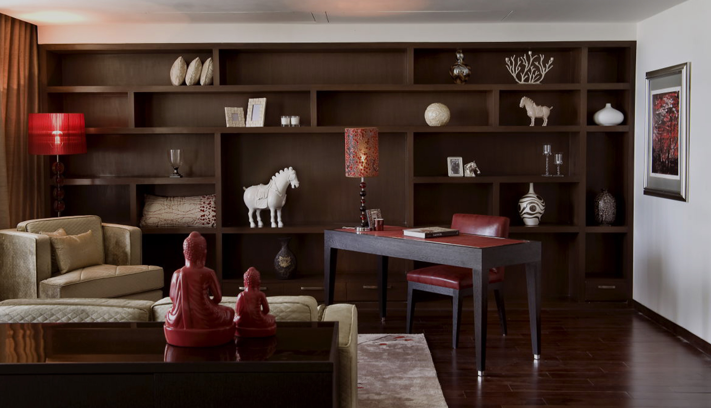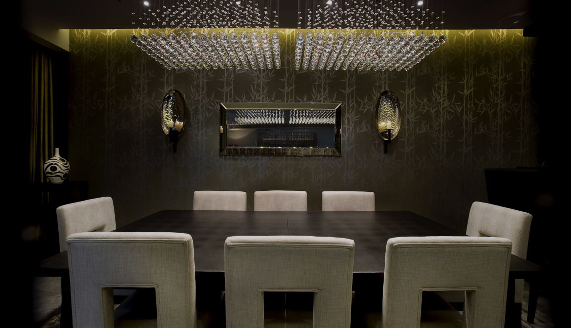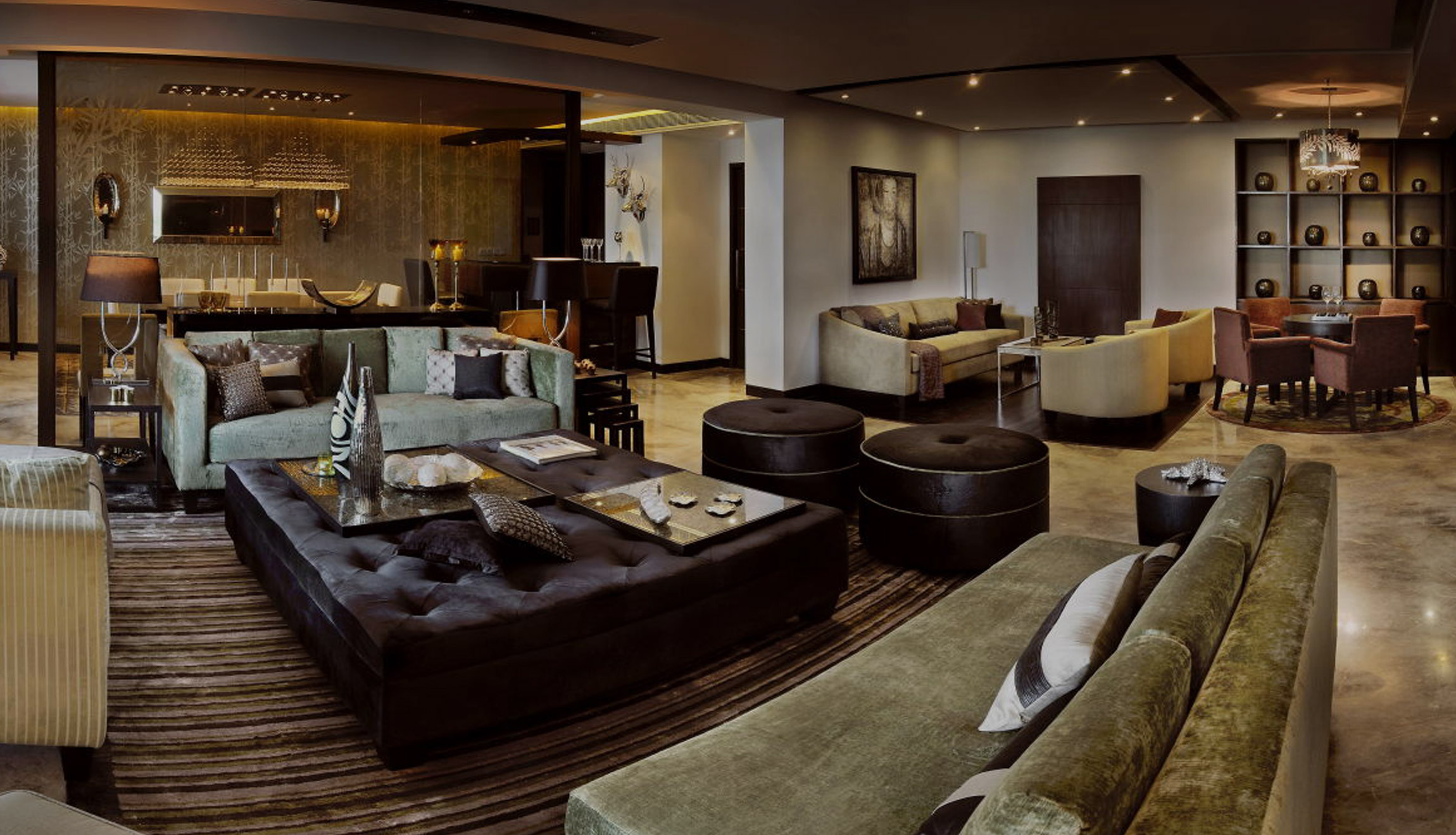 The lighting, textures and materials used like Italian marble floors and smoked oak woods add to the opulence of the space.
